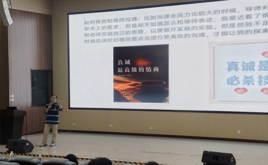 最后,孙建平教授聚焦研究方向确定、实验规划与细节把控、职业规划与就业竞争力提升、师生高效沟通四大核心问题进行分享。他强调要定期复盘,及时总结经验和调整状态,希望同学们能培养以真诚为核心的师生沟通技巧。