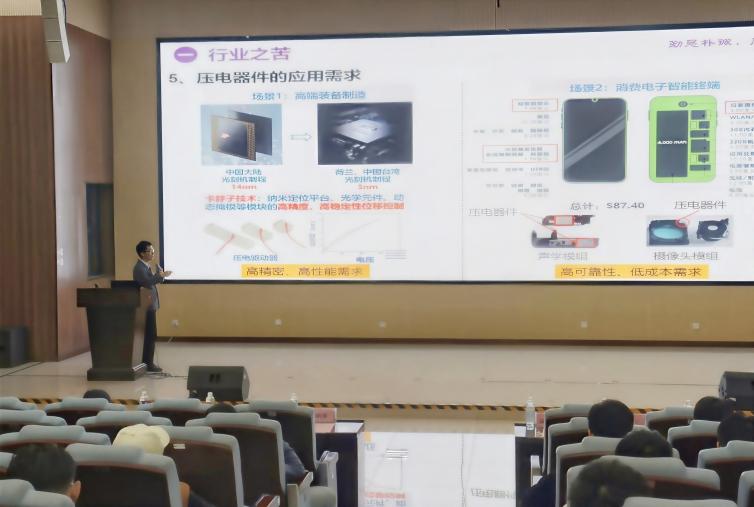 岑侦勇副教授围绕行业之苦、研究之乐、苦中作乐三个部分,介绍了压电材料的应用领域与市场前景,剖析行业面临的痛点及发展趋势,以已发表的研究成果向同学们介绍了如何做科研。针对同学们的科研焦虑,他提出要培养核心素养、保持乐观心态、加强交流的建议。